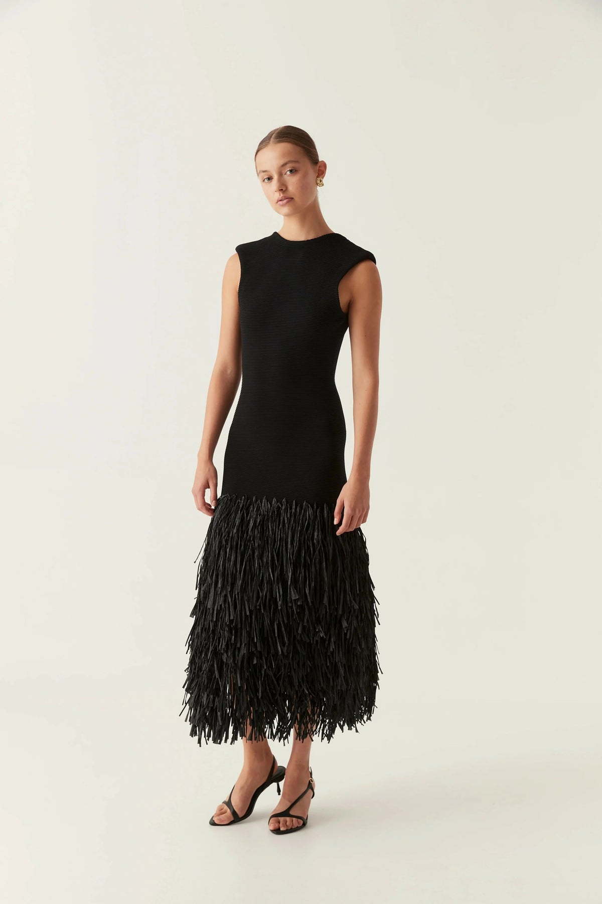 Los flecos en la falda añaden un aire de movimiento y elegancia, dando un toque de sofisticación a tu look. Gracias a las propiedades elásticas de su tejido y a su corte ceñido, se ajusta a la perfección a cualquier tipo de cuerpo, resaltando tus curvas y tu figura. Ideal para eventos especiales o salidas nocturnas, este vestido te hará lucir radiante y a la moda, resaltando tu belleza natural con un toque de sensualidad.