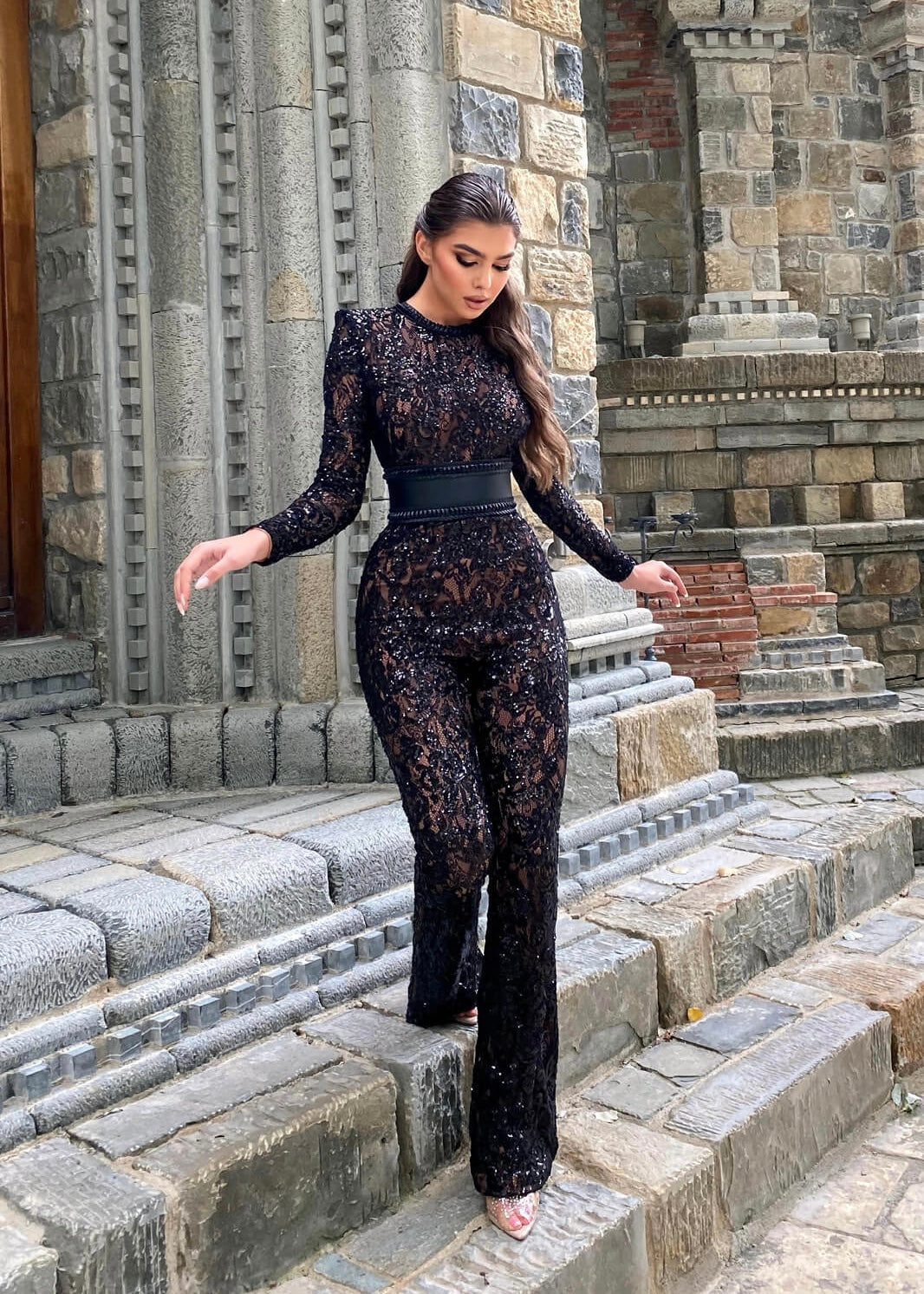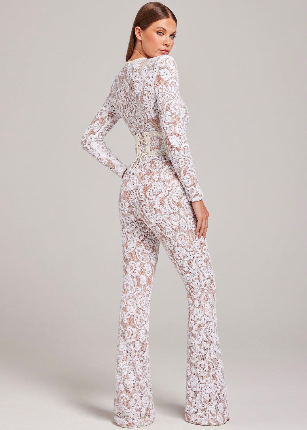 Esta pieza, gracias a su diseño de encaje y corte estilizado aporta un toque chic, elegante y femenino a tu look, mientras que su tejido de encaje elástico y ligero, te hacen ver más sexy que nunca. Sus mangas largas de encaje y su cinturón estilo corsé combinan la elegancia tradicional con un toque moderno; mientras que el forro nude proporciona cobertura, a la vez que resalta los detalles del encaje.