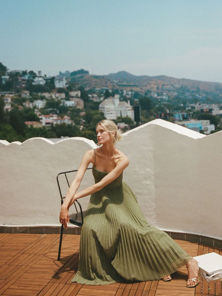 Con nuestro vestido plisado "Luna", destaca en cualquier ocasión con un estilo único y radiante.