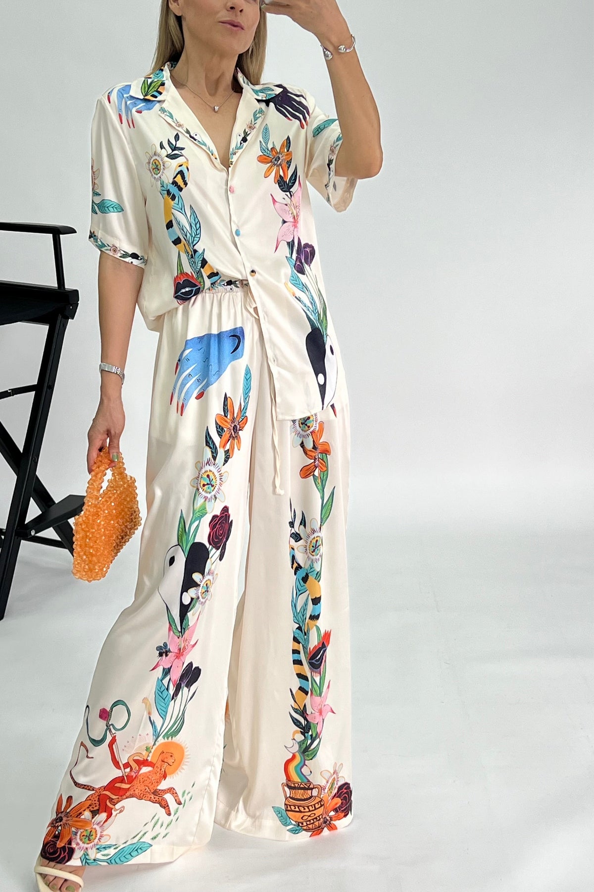 Enamórate de nuestro conjunto de pantalón de pierna ancha y camisa "Shanghai", donde la exclusividad y la elegancia se unen en cada paso. Inspirado en la belleza de los mosaicos tradicionales, este conjunto cuenta con un diseño único con el que serás el centro de todas las miradas vayas donde vayas.